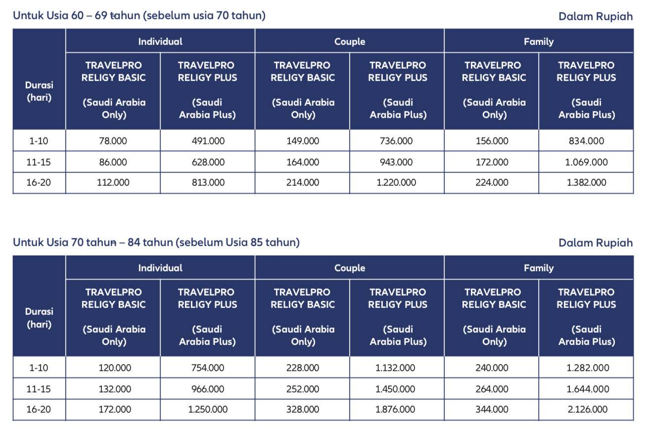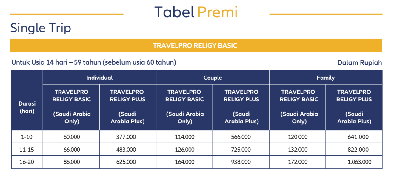 Tabel Premi Asuransi Perjalanan Umroh Allianz/Allianz Umrah Travel Insurance TravelPRO Religy Umroh