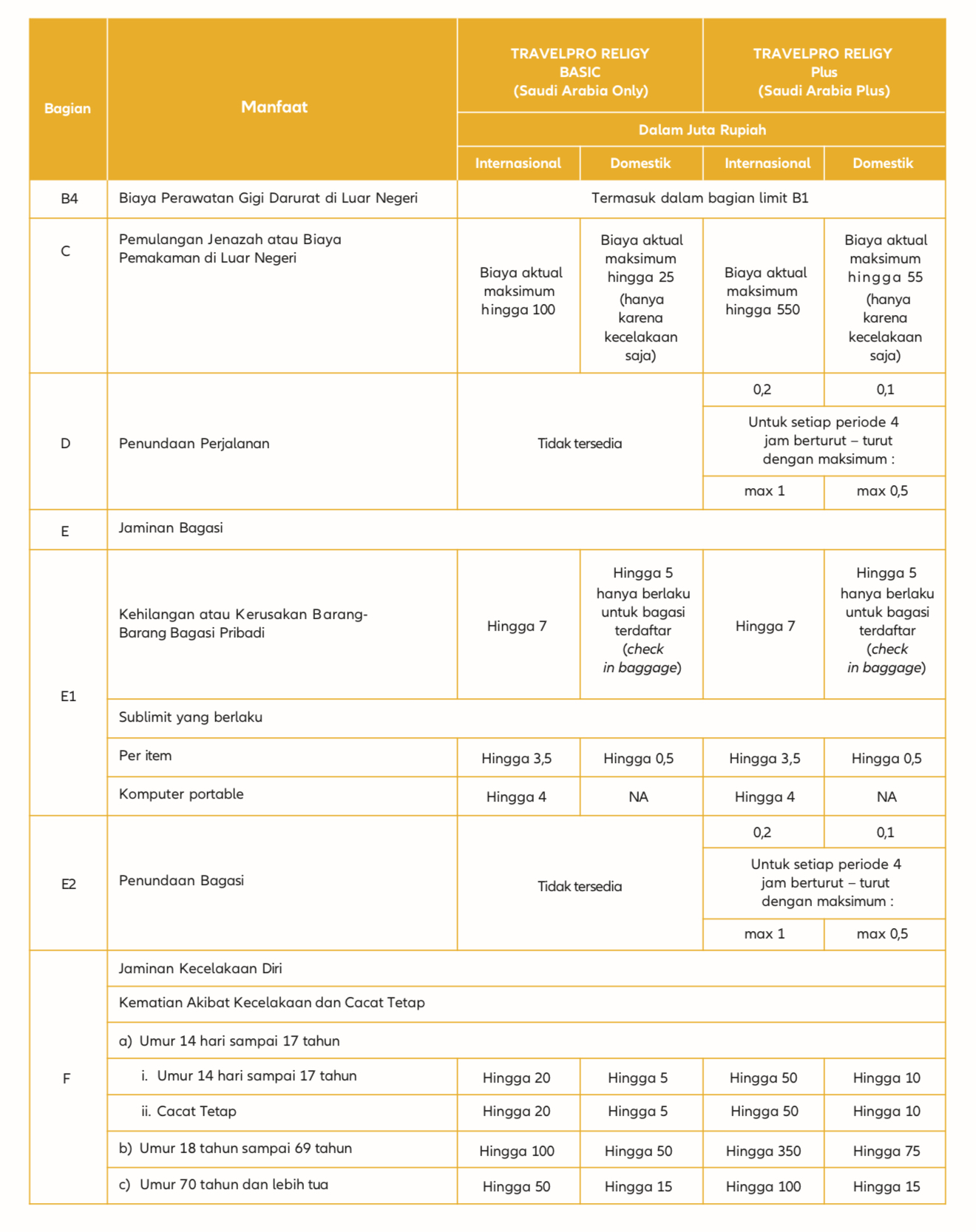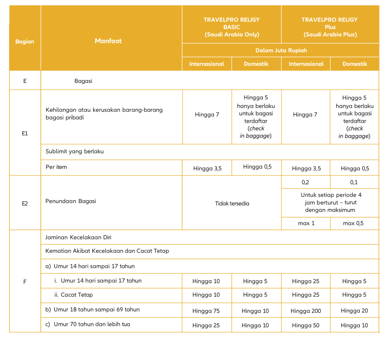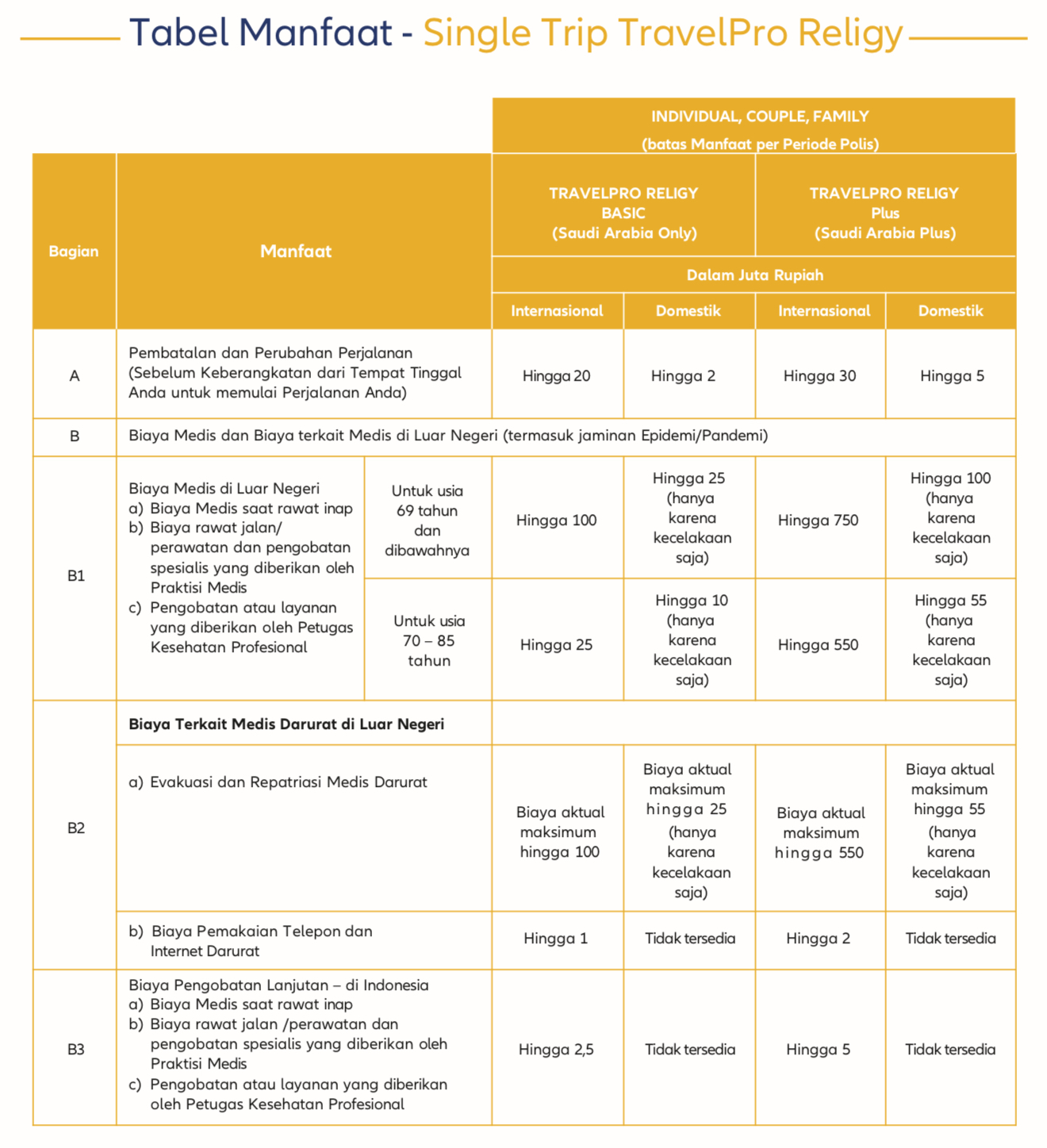 Tabel Manfaat Asuransi Perjalanan Umroh Allianz/Allianz Umrah Travel Insurance TravelPRO Religy Umroh